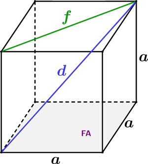 a - ребро куба, d - диагональ куба, f - диагональ грани